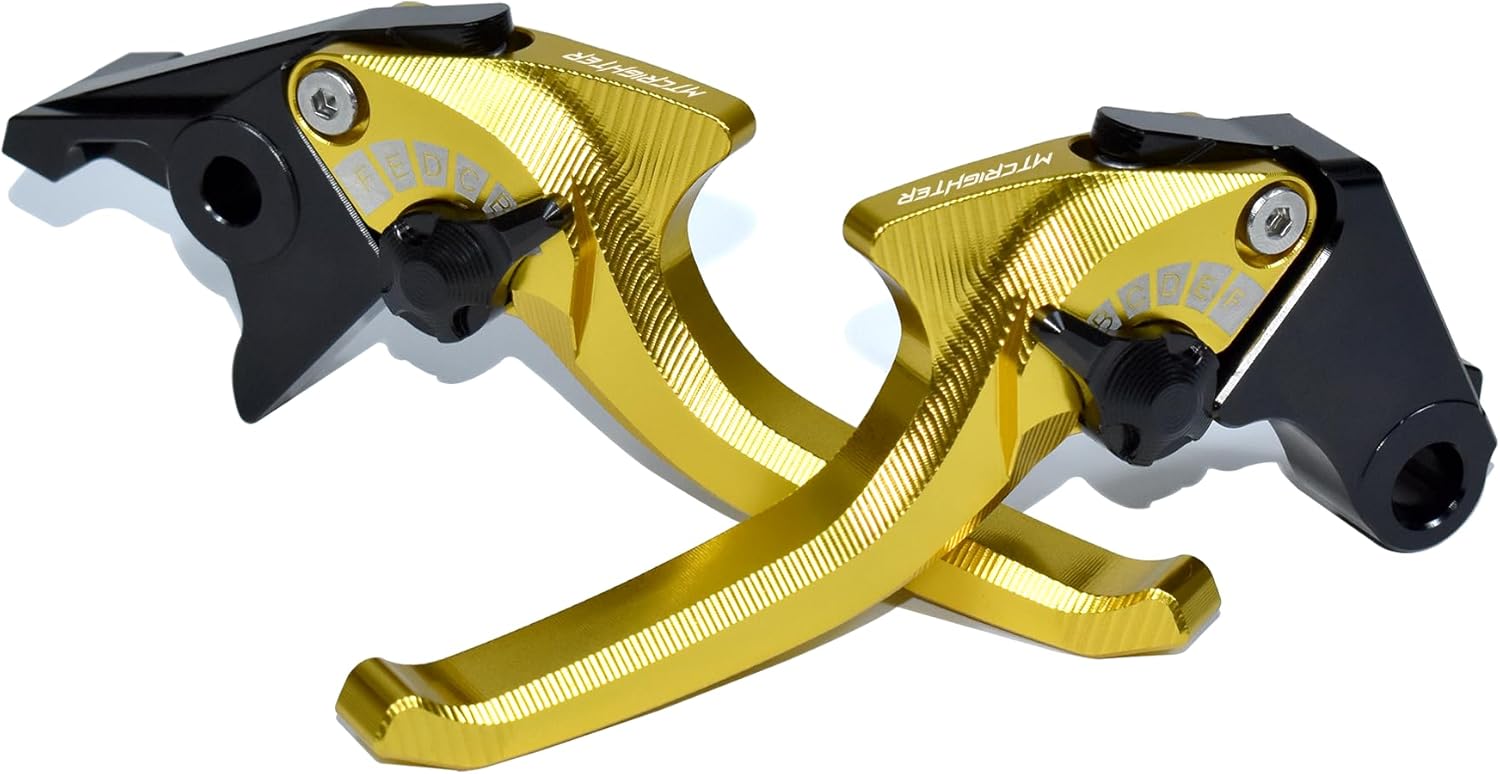 Product Description Brand: MTCRIGHTER Product name: 2 Fingers Short Brake and Clutch Lever Set Applicable Motorcycle: Compatible With HONDA MONKEY 125 2019-2024 Compatible With HONDA GROM / MSX125/ SF 2014-2024 Material: T6101 CNC Aluminum Alloy Color: Black, Gold, Red, Blue, Titanium, Green, Orange Package includes: 1 piece Brake Lever + 1 piece Clutch Lever IMPORTANT: The lever design is 2 fingers lever, please make sure the size of lever if you need before place order. Please make sure the item can fit your motorcycle before placing order.