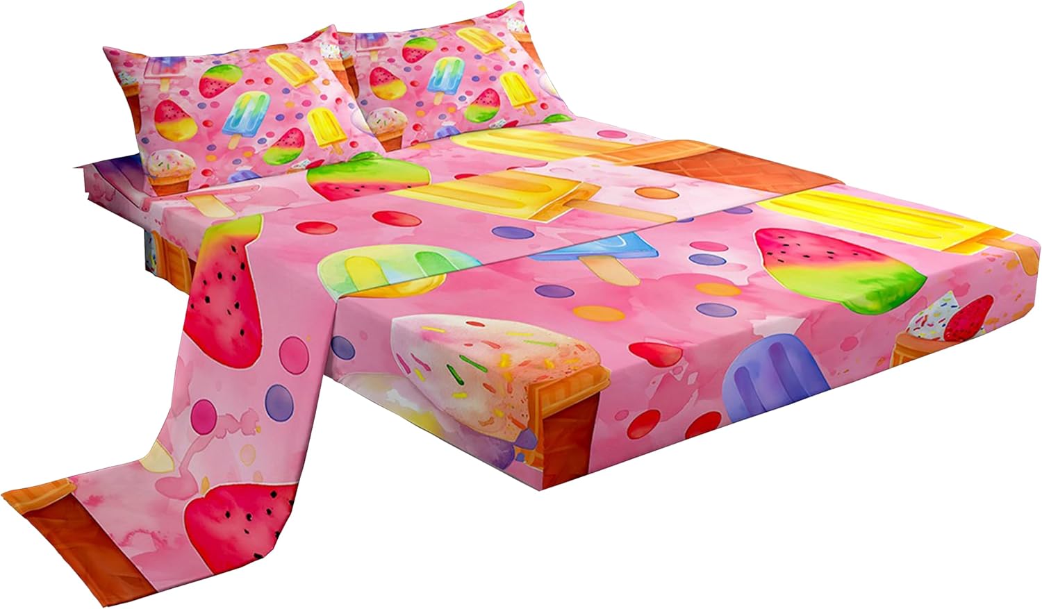 We Have Been Listening to The Opinions of Our Customers From The Reviews,So We Developed a New Bed Sheet Set and Added Flat top Sheets to Meet The Needs of More People.Our Bedroom Decor Bed Sheets Set Look with The Vivid Stylish and Elegant Print Bedding Set. Size Information Twin Size Includes: 1 Pillowcase(20”x30”) and 1 Fitted Sheet(39”x75”x16") and 1 Flat Sheet 96x66" Full Size Includes: 2 Pillowcases(20”x30”) and 1 Fitted Sheet(54”x75”x16") and 1 Flat Sheet 96x81" Queen Size Includes: 2 Pillowcases(20”x30”) and 1 Fitted Sheet(60”x80”x16") and 1 Flat Sheet 102x90" King Size Includes: 2 Pillowcases(20”x35”) and 1 Fitted Sheet(78”x80”x16") and 1 Flat Sheet 106x90" Materials: Luxuriously Brushed Microfiber Fabric Fabric and Design: Silky Soft Brushed Microfiber Cotton Feel Material Bed Set Bedding Set Fashion forward Inspired 3D Print Patterned Technique Flat Fitted Sheet Top Sheet Features: Luxuriously Soft Feel for a Great Night Sleep with Less tossing and Turning Just The Right Fill to Keep You Warm In The Winter and Comfortable In The Summer Built to Last with Premium Fabrics and Expert Stitching Care Instructions Dry Clean Preferred.Machine Washable,Use Front Loader Machine(Or top Loader without Agitator)to Avoid Tearing,Use Cold Water on Gentle Cycle,Tumble Dry Low.