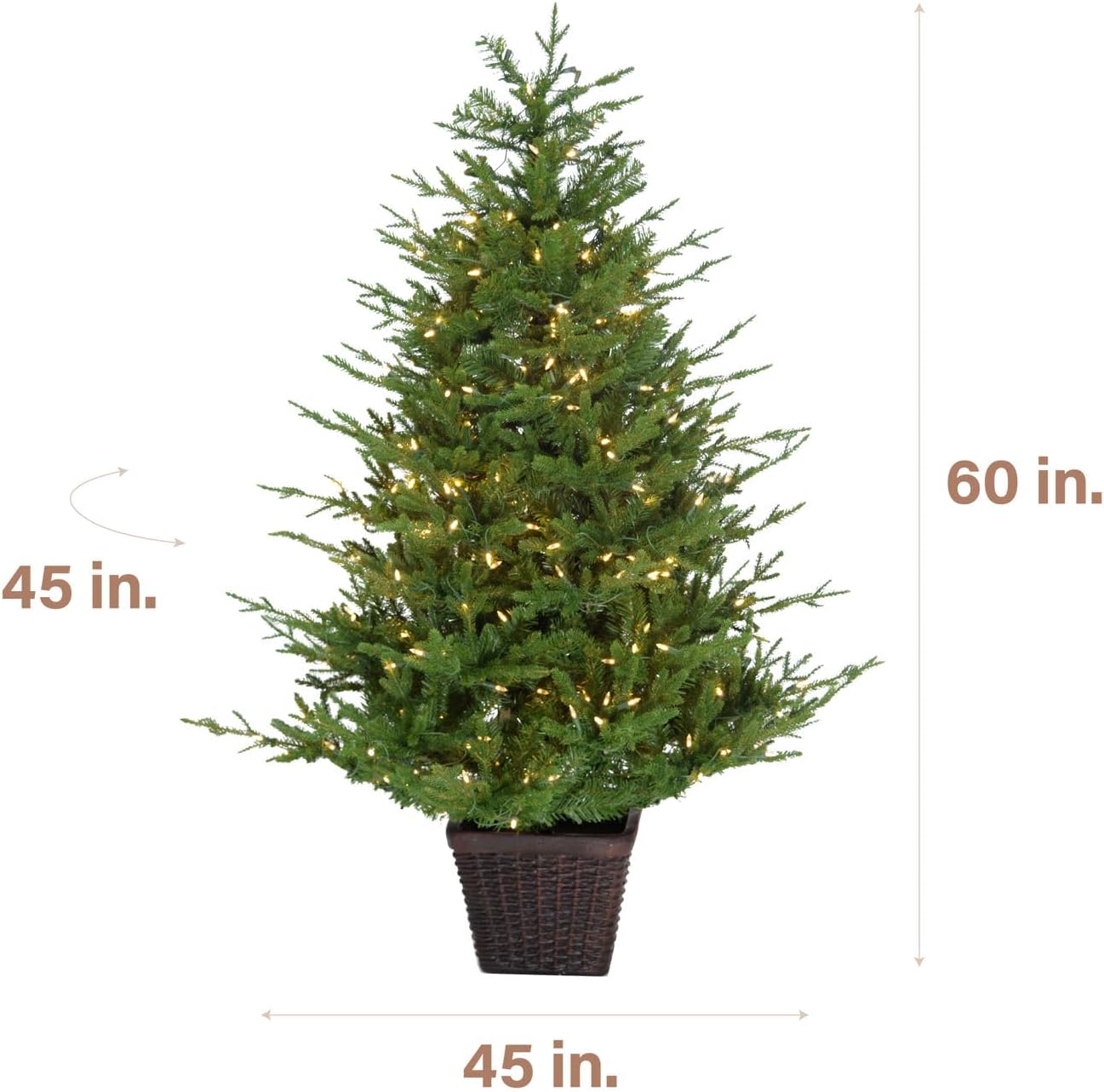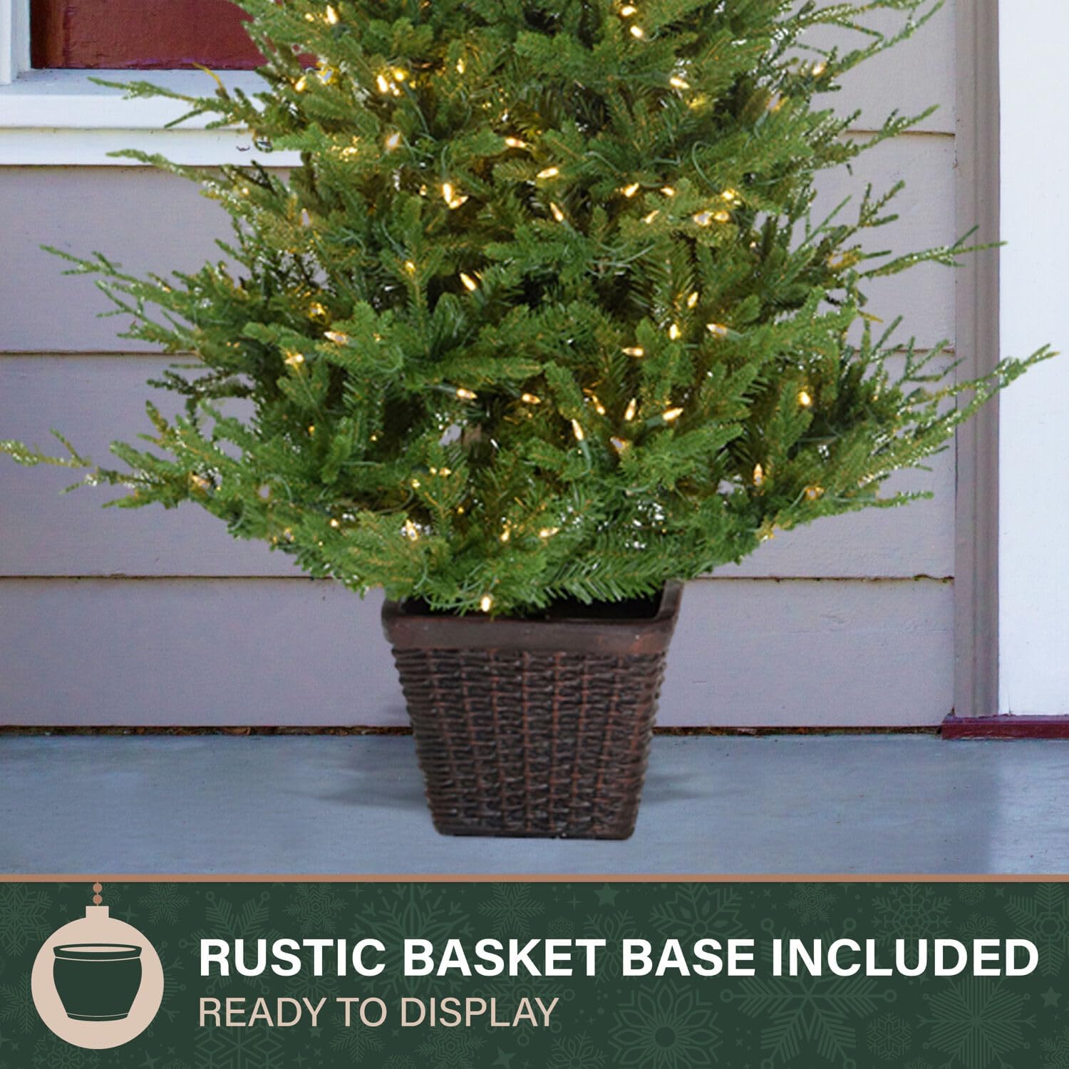 The 4-ft. Potted Pine Artificial Christmas Tree from Fraser Hill Farm features lifelike foliage and all-metal hinged branch construction. Fraser Hill Farm produces the most realistic trees in the market, featuring all the long-term benefits that come with owning an artificial tree. The tree simply unfolds out of storage ready to bring seasonal enchantment to your home. This model is pre-strung with a system of 100 evenly distributed, clear bulbs. The tree needles are constructed out of non-allergenic and flame-retardant materials then painted multiple hues of green so no two are exactly alike. These details create the look of a natural tree and require less maintenance. Designed to last, this 4-ft. potted Pine tree is sure to provide more convenience and ease to your holiday season, year after year.