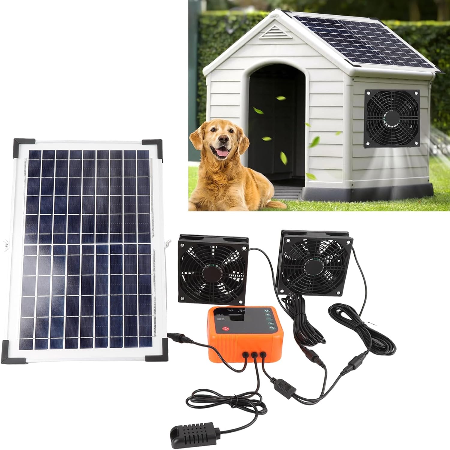 Specification: Item Type: Solar Exhaust Fan Kit Material: Polysilicon, ABS Use: Solar Fan Power: 10W Battery: Li Battery, 4400mAh (Built in) Function: Temperature Control, Timer Function, Digital Display Maximum Continuous Working Time: 3H, Continuously Charged by Sunlight, Adjustable Intermittent Working Weight: Approx. 2110.00g / 74.43oz How to Use: Connect the accessories to start using directly. Package List: 1 x Solar Panel 1 x Bracket 1 x Controller 14 x Screws 2 x Nuts 2 x Expansion Screws 1 x 12 x Anchors 2 x Fans (with Battery)