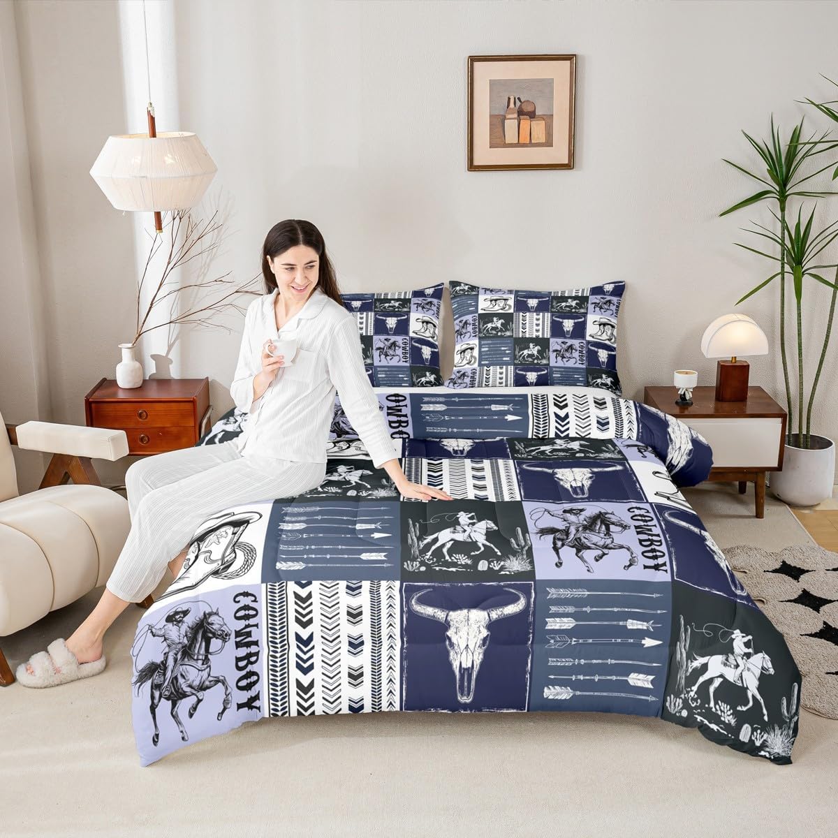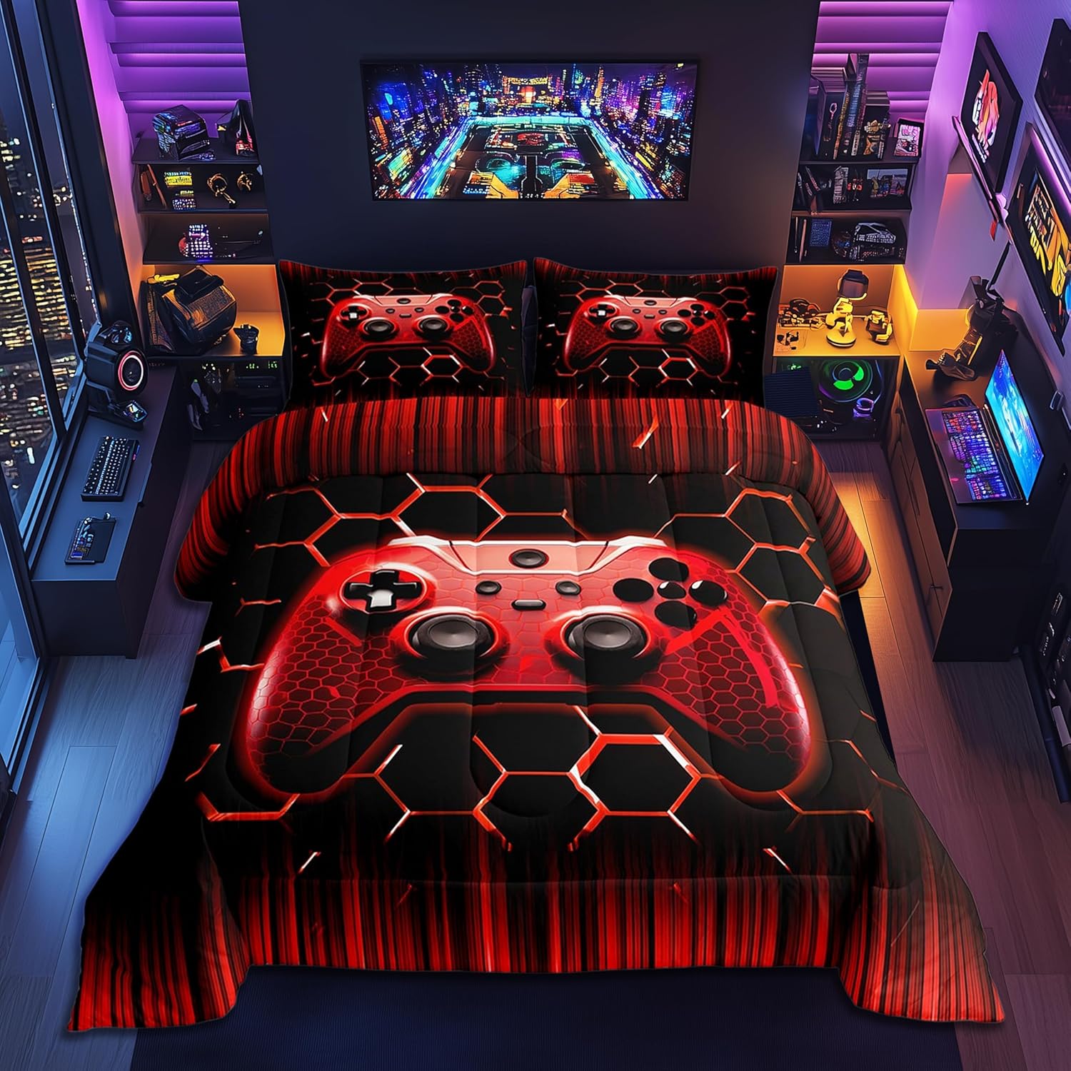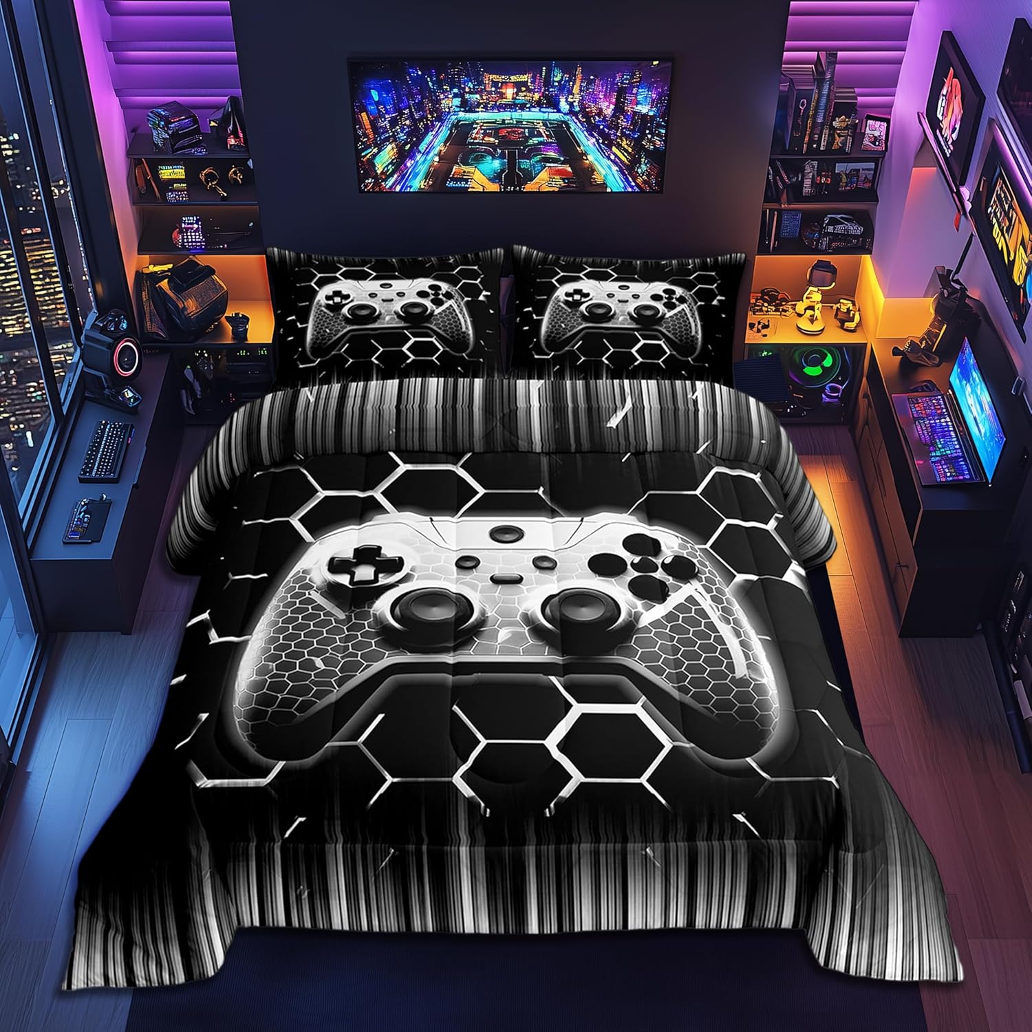 Package Include: Comforter and Pillowcase. Makeover your bedrooms every season with our Comforter sets. Perfect item for your room, girls boys youth room, master bedroom. Size Information: Twin size down comforter 68"W x 90"L and 1 pillow case 30"W x 20"L. 2pcs with 1 Bed Comforter and 1 Pillowcases in A Bag Full size down comforter 79"W x 90"L and 2 pillow cases 30"W x 20"L. 3pcs with 1 Bed Comforter and 2 Pillowcases in A Bag Queen size down comforter 90"W x 90"L and 2 pillow cases 30"W x 20"L. 3pcs with 1 Bed Comforter and 2 Pillowcases in A Bag King size down comforter 104"W x 90"L and 2 pillow cases 36"W x 20"L. 3pcs with 1 Bed Comforter and 2 Pillowcases in A Bag Useful and practical A luxurious product for homes, dorm rooms, hotels, guest rooms. Practical to use for being polyester, feels like cotton which is Super Soft and Breathable. No chemicals used, No dye substance harming the health of you or your family. Unique design: Vivid Colors won't fade thanks to new 3D digital printing methods. These unique designs match well with various color palettes of your rugs, curtains, headboard, furniture, and all other decor accessories. Personalized: As manufacturers of digital printed home textiles, we follow current trends and bring you the latest home fashion. More Decor: Search our store to get more christmas theme, new year theme, autumn fall theme, any holiday theme, modern abstract, farmhouse rustic theme, simple pattern, garden flowers etc. home decoration. Warm Tips: 1. Please allow 1-3cm error due to manual measurement. 2. Actual color may vary from the color on your screen due to monitor color restrictions.