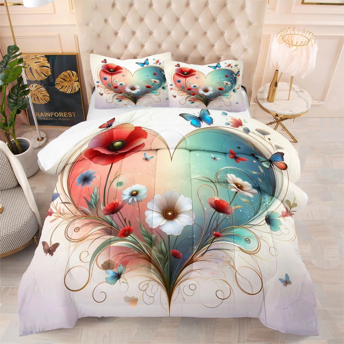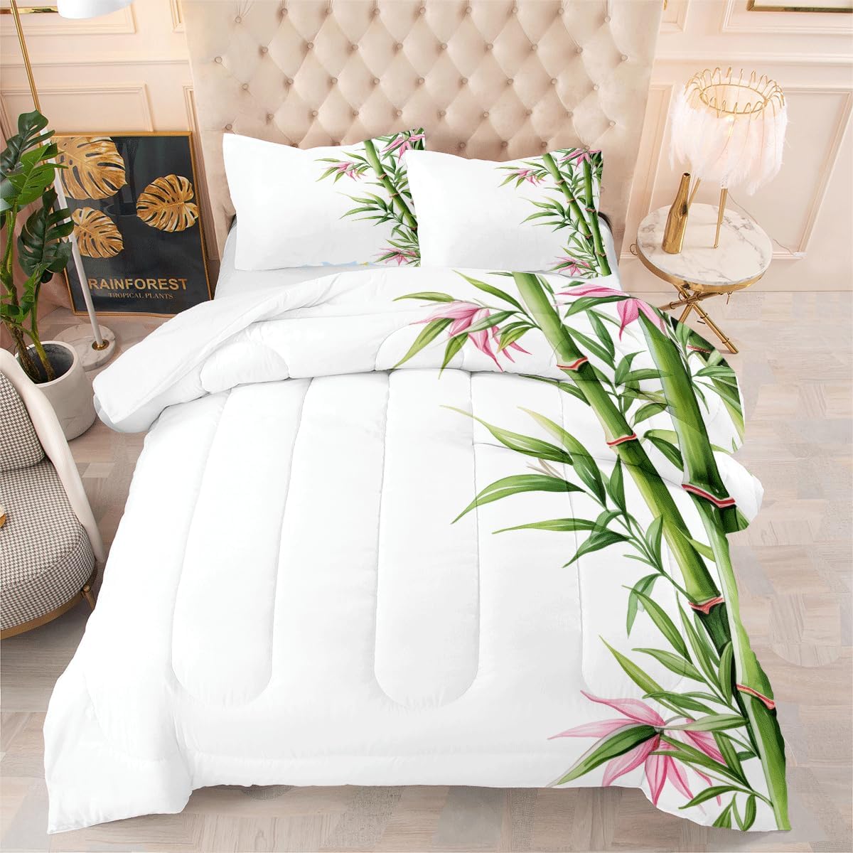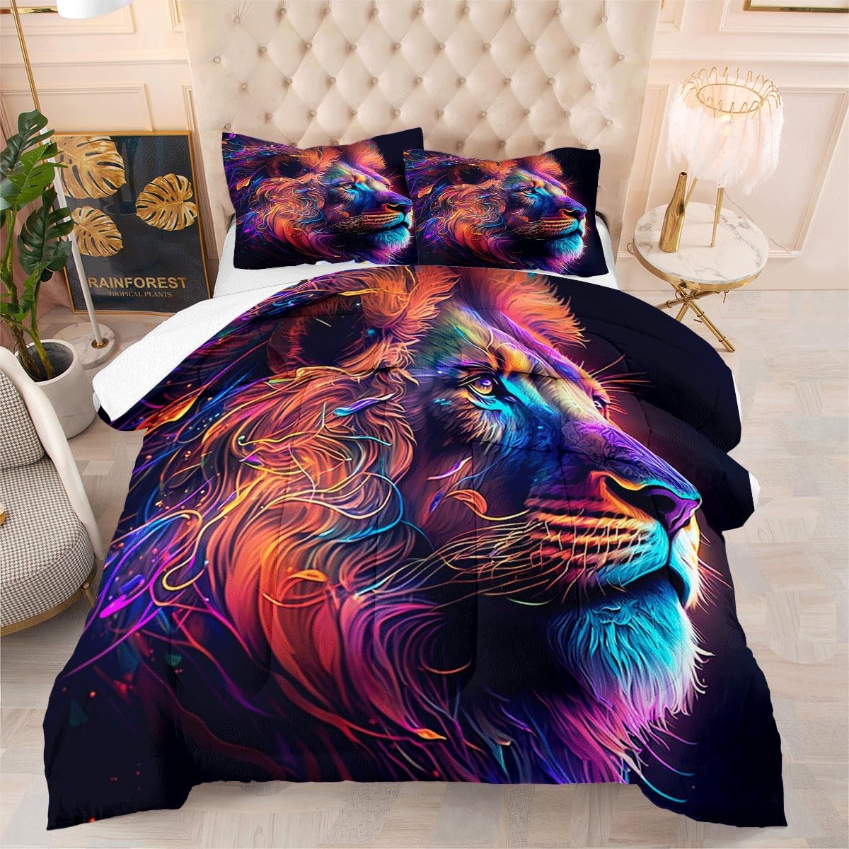 Twin size: 1 Comforter (68" x 90") and 1 Pillowcase (20" x 30"). Comforter The weight 3.97 pounds Full size: 1 Comforter (79"x90") and 2 PillowcaseS (20" x 30"). The weight 4.63 pounds Queen size: 1 Comforter (90" x 90") and 2 Pillowcases (20" x 30").The weight 5.3 pounds King size: 1 Comforter (104" x 90") and 2 Pillowcases (20" x 36"). The weight 6.4 pounds Comforter