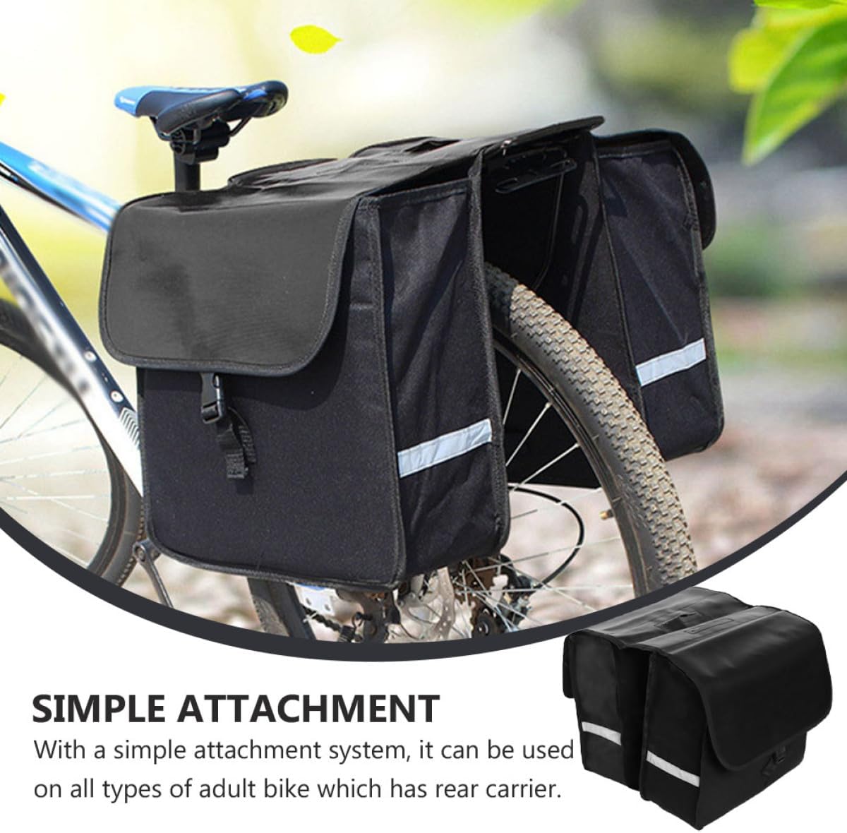 Package List 1 x bike bag Features - Material: PVC printing mesh and 600d encrypted non-woven fabric. - Size: 32.00 x 34.00 x 12.00cm/ 12.58 x 13.36 x 4.72 inch. - Color: Black. -Product Info:Waterproof cycling pack bag - Suitable for both men and women's bike. Minimal exterior for your daily commuter rear rack bike bag. - Big capacity in total is enough for your daily commute or shopping loads bicycle bag waterproof for pannier rack. - The product designed for convenient for trips and long distance journeys bike pannier. - Can resist all kinds of weather, keeping your personal belongings safe and secure pannier bike bag. - The reflective spots on the bag side provide nighttime visibility bike seat bag. - Bike pannier is super durable as well as anti-tear, wear-resistant and , protecting your items perfectly.Goods Informationrear rack bike bag bike bag is perfect for commuting to work or school and for everyday off-bike use! The large compartment can fit all your essentials, including books, outfits and water bottles.bike rear rack carrier bag Additional small items like a cellphone, wallet, snacks mini tire air pumps, etc