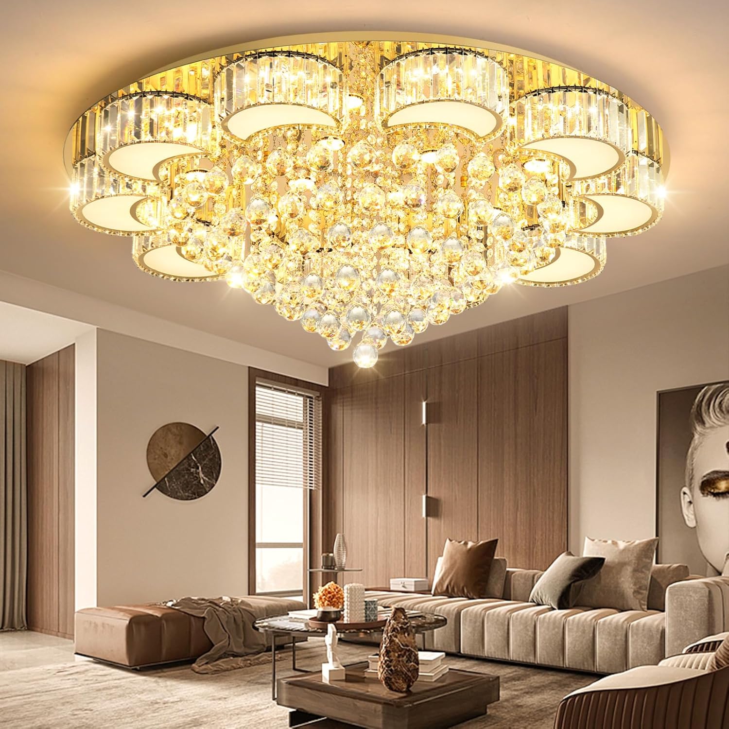 AFQEJG 11.8'' Black Modern Crystal Chandeliers for Dining Room LED Dimmable Light Fixtures Flush Mount Light Living Room Bedrooms