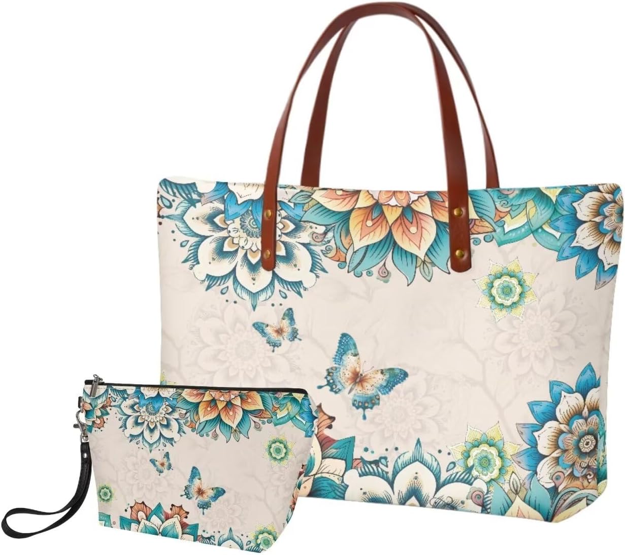 Want a handbag with unique pattern? Look for a handbag that is lightweight and have enough room for going out? Then, our purse set is a good choice. Take it and have a happy weekend or holiday. Our Purse and Wallet Set include 1 Tote Handbag+ 1 PU Cosmetic Bag. The Tote Handbag with a PU Handle is made of polyester that is soft, durable, lightweight and color-fast. The Cosmetic Bag is made of PU Leather, and has a main bag for cosmetic and other small things, a zipper and a wrist strap. Our Handbag Set is suitable for shopping, working, vacation, party and daily use. It can go well with many different kinds of clothes. Our Tote Bag with Cosmetic Case is a good gift choice for your families or friends. That will be a special gift. Please allow a little error (usually 1 to 2 cm) on the size due to different measure methods. Please allow a little color different due to different display or light environment.