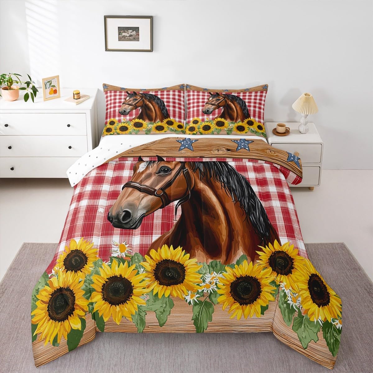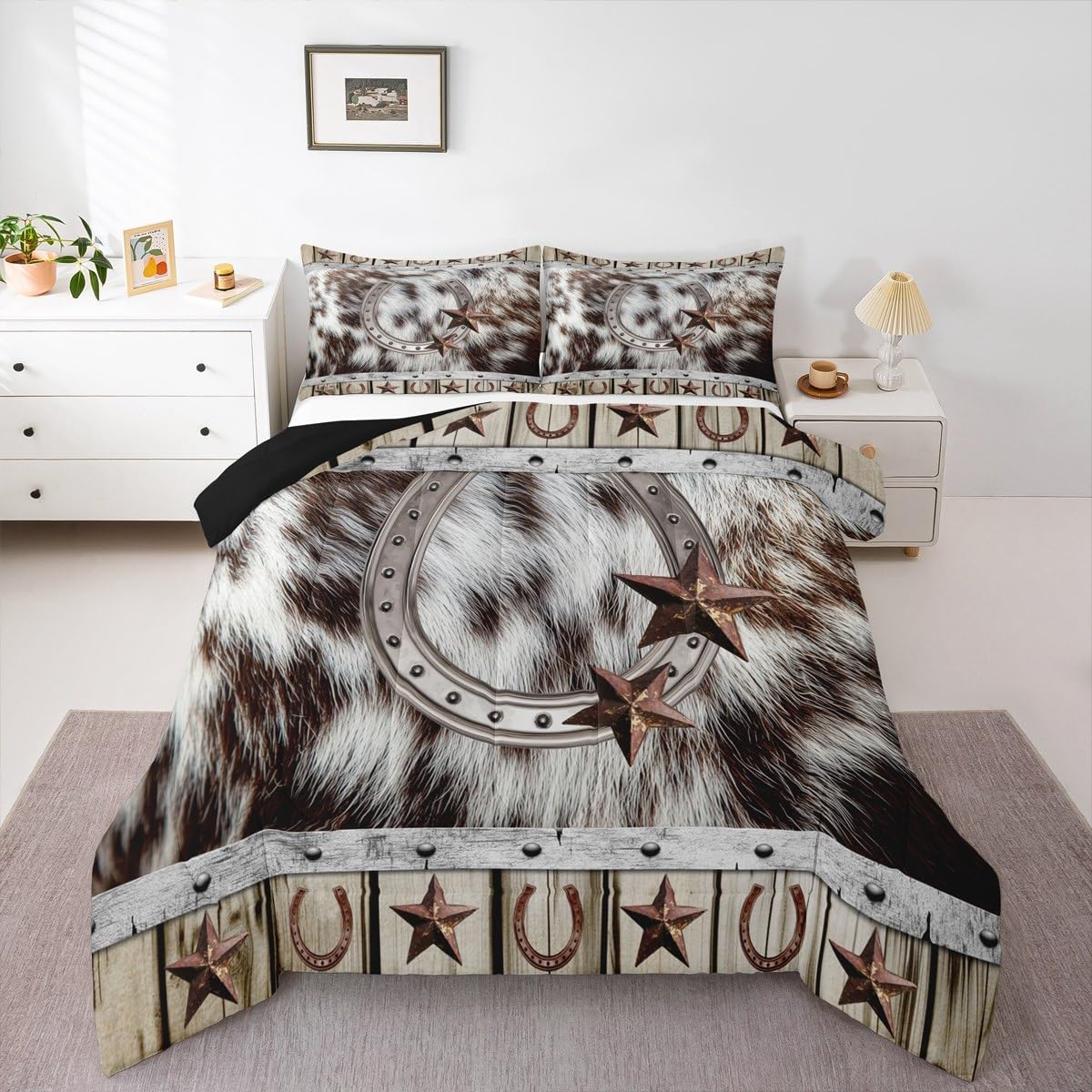 Welcome to our store We have specialized in home textile for many years:We are contribute to provide good customer service and products Size Information Twin size: 1 Down Comforter 68"W x 90"L and 1 Quilted Pillowcase 30"W x 20"L Full size: 1 Down Comforter 79"W x 90"L and 2 Quilted Pillowcases 30"W x 20"L Queen size: 1 Down Comforter 90"W x 90"L and 2 Quilted Pillowcases 30"W x 20"L King size: 1 Down Comforter 104"W x 90"L and 2 Quilted Pillowcases 36"W x 20"L Versatility We have many kinds of styles for you to choose: You can easily find a product that suits the style of your room The item is not only good for your bedroom,guest room,living room or Rv,but also a great Present for holidays or anniversaries for people who you love Modern Design The luxury aesthetic comforter set is made by reactive printing and dyeing process:The pattern is clear, the color is lasting and bright, which will not fade after repeated washing Personalized As a manufacturer of digital printed home textiles,we follow current trends and bring you the latest and stylish home textile products The item will make the room decorated in exquisite taste Our Wish We sincerely hope you'll love the bed set