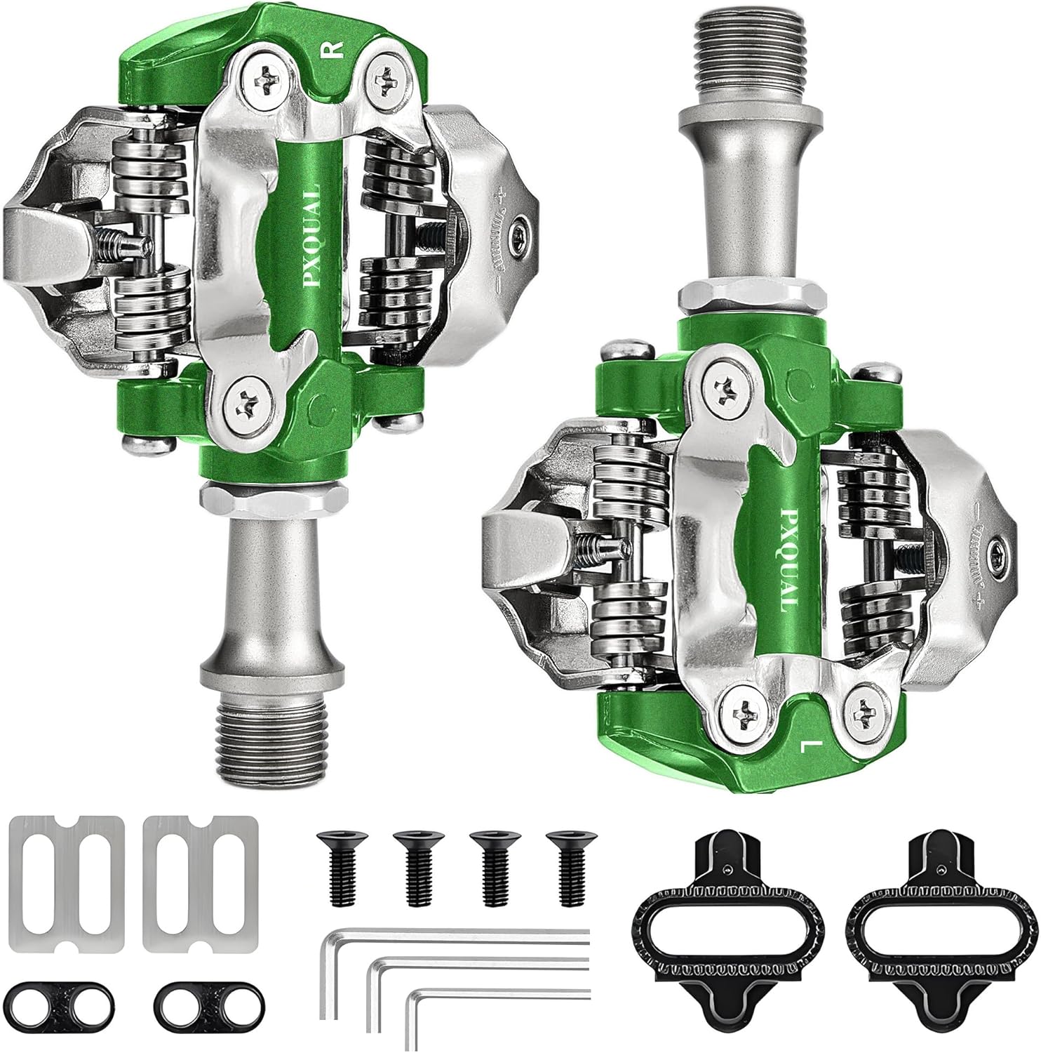 Engineered for Challenging Trails and Long Commutes, These Clipless Pedals Combine Lightweight Aluminum Construction with Professional-Grade Durability.Bike pedal open-channel design eliminates mud buildup, while adjustable tension allows customization for all skill levels.About mountain bike pedalsSealed bearings and a chromoly steel axle ensure years of maintenance-free performance.Bike pedals not only makes you better control the pedals, but also you can pedal with greater efficiency.Sealed bearing spd pedals protect spindles from water and dust which will cause noise and other problemsThese mountain bike pedals use standard 9/16-inch threading, compatible with most bicyclesSpecification:● Material: Aluminum alloy pedal body and Cr-Mo axle● Model: SPD sealed clipless pedal● Size: 3.84*2.78*1.32 in / 97.5*70.5*33.6 mm● Weight: 347 g/12.26 oz per pair● Color: Red● Axle: Cr-MoPackage Included:● 2 X Bike pedals● 2 X Bike cleats● 2 X Washers● 2 X Screw Washer● 4 X Screws● 3 X L-shaped wrench