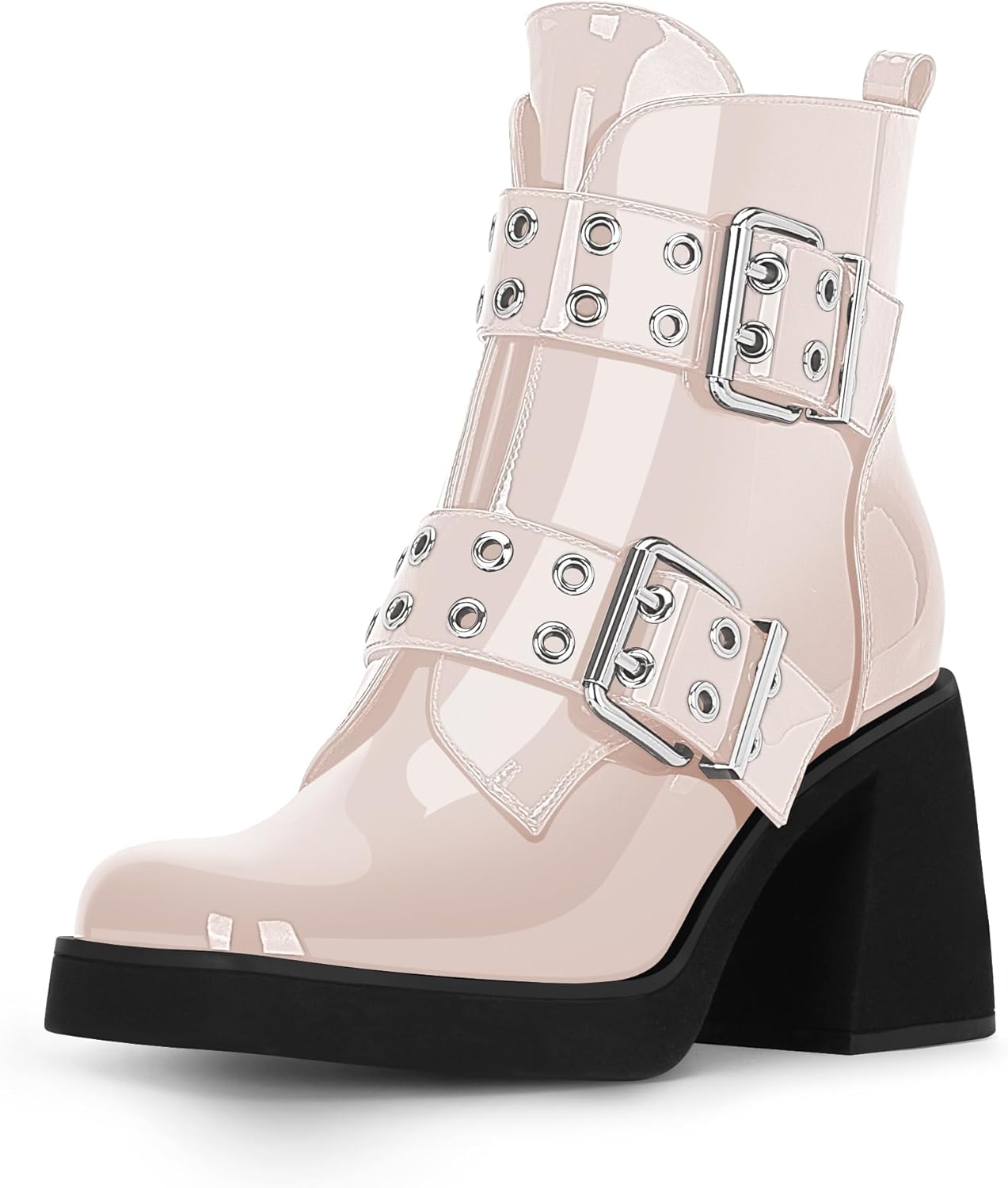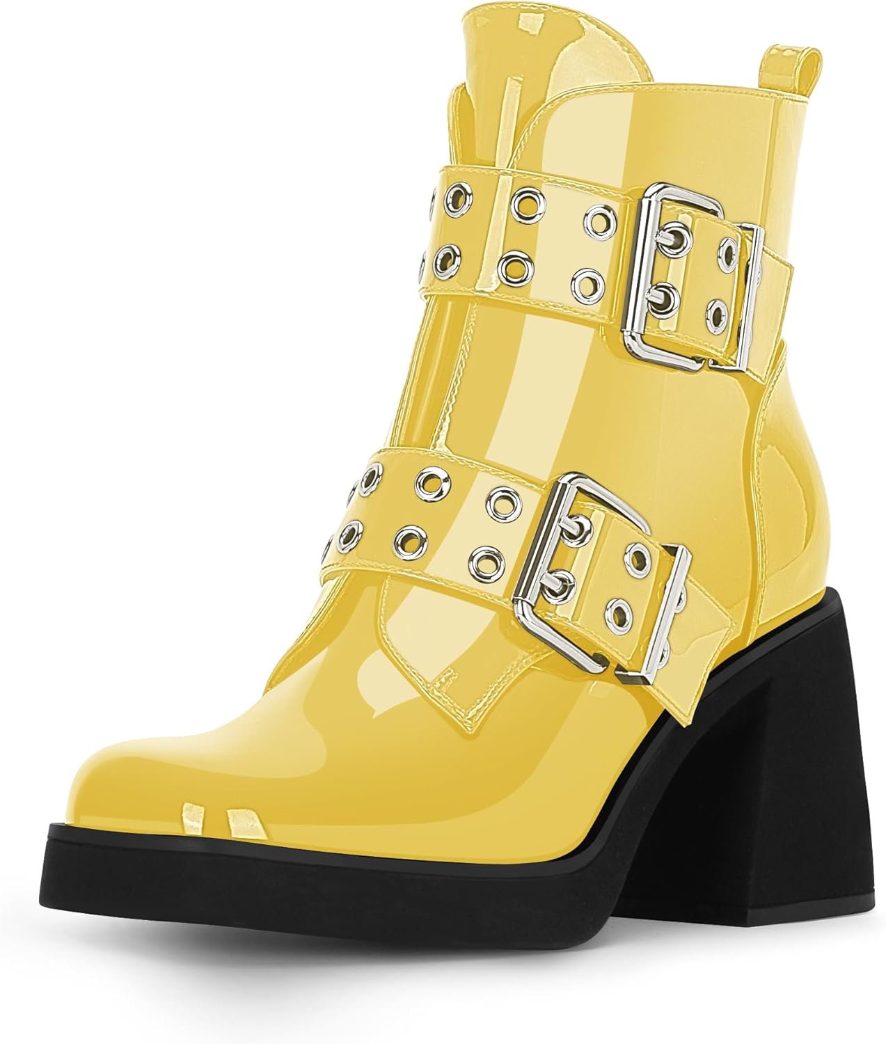 Step up your shoe game with these stylish YOWMNS Women's Patent Leather Side Zipper Ankle Boots. Made from premium patent leather, these boots are the perfect blend of fashion and functionality.With a convenient side zipper closure, these boots are easy to put on and take off. The chunky heel provides stability and comfort, while the platform adds extra height and style. The stylish buckle detail adds a trendy touch, making these boots a versatile option for any occasion.Whether you're dressing up for a night out or looking to add a fashionable twist to your everyday attire, these YOWMNS ankle boots are the perfect choice. Elevate your style and step out with confidence in these patent leather ankle boots.