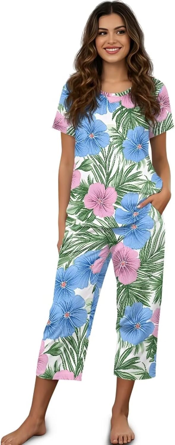 Oamsistay Women's Fashion Pajama Sets Short Sleeve Shirt S-4XL Floral Pajamas Set Soft PJ Loungewear Sleepwear Casual Printed Loungewear Combining casualness with practicality, this set is the ideal choice for warm evenings, lazy weekends, or relaxing days. With breathable fabrics, a chic aesthetic, and thoughtful details, it redefines casual loungewear. Sizes: S / M / L / XL / 2XL / 3XL / SXL Packags: Tops*1 & Long Pants *1 Features: Multi Occasions to Wear: Sleeping, Leisure, Home Wear, Dating, Street, Daily Wear, Walking and Walking the Dog and Vacation etc. Fashion Printed: The prints on the pajamas set are mainly daily themes such as florals, butterflies, hummingbirds, flowers, leaves, dragonflies, cats, dogs, etc.